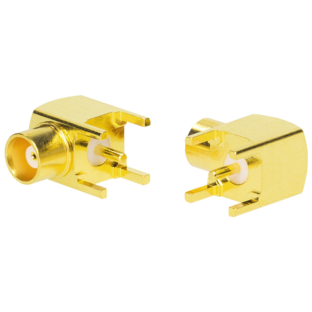 | Разъем MCX-KWHD3 - розетка угловая на плату. Рабочая частота 6 ГГц, КСВН ≤ 1,40, монтаж в печатную плату пайкой. |