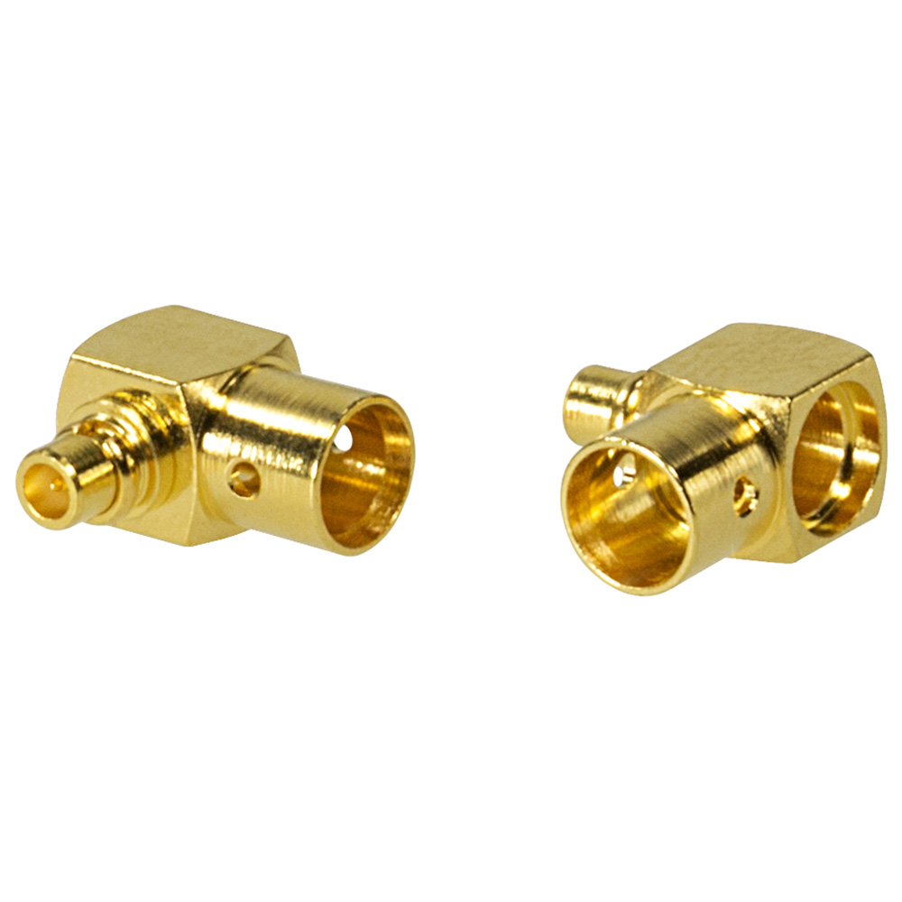 | ВЧ разъем MMCX-JWB3 - вилка кабельная угловая для полужесткого кабеля RG-402U. Рабочая частота 4 ГГц, КСВН ≤ 1,32. Волновое сопротивление 50 Ом. |