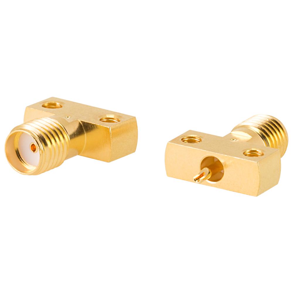 RF6-KD16 - негерметичная микрополосковая розетка фланцевая на плату, тип IX. Рабочая частота 12 ГГц, КСВН ≤ 1,29.