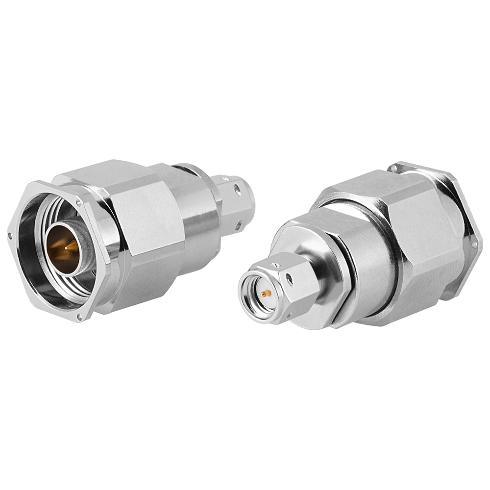Межканальный коаксиальный переход КП-ВВ2-N-IX/1-5.М: N вилка - IХ вилка. Рабочая частота 18 ГГц, КСВН ≤ 1,25.
